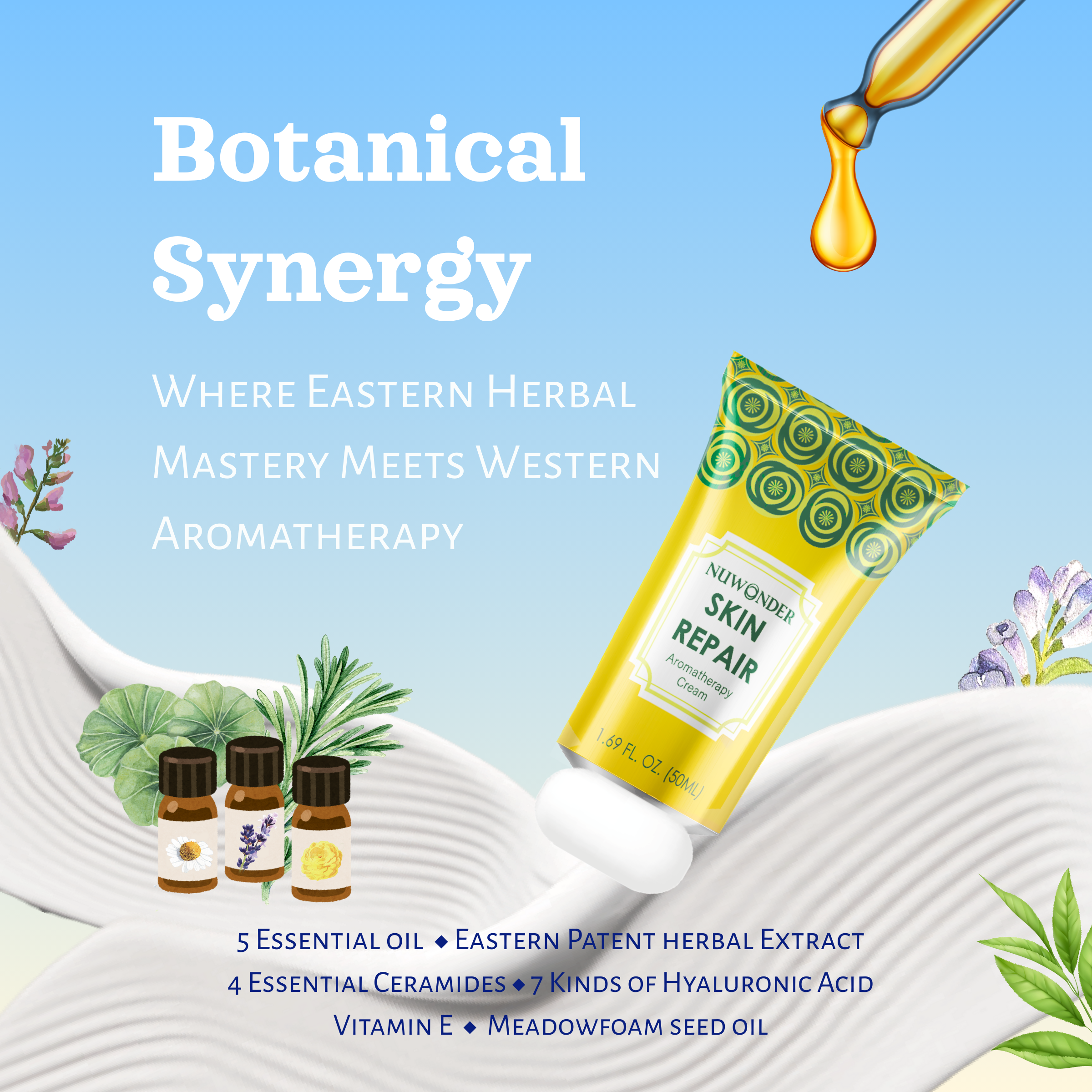 This East–West–Aromatherapy integration creates a new direction in clean, gentle repair care for all ages.